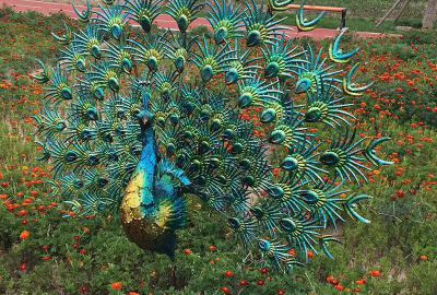 不銹鋼孔雀雕塑,就是神鳥鳳凰。在神話典籍《山海經》中記載:有鳥焉,不銹鋼景觀孔雀雕塑如雞,五采而文,名曰鳳凰。在我們的文化中,一般都認為鳳凰是孔雀雕塑之王,因而有百鳥朝鳳的典故和說法。在我們的古代神話中,有一種不銹鋼噴鍍孔雀雕塑非常相似的神鳥,就是朱雀。